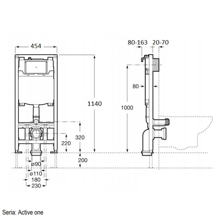 - Do miski wiszącej o rozstawie montażowym 18 cm lub 23 cm