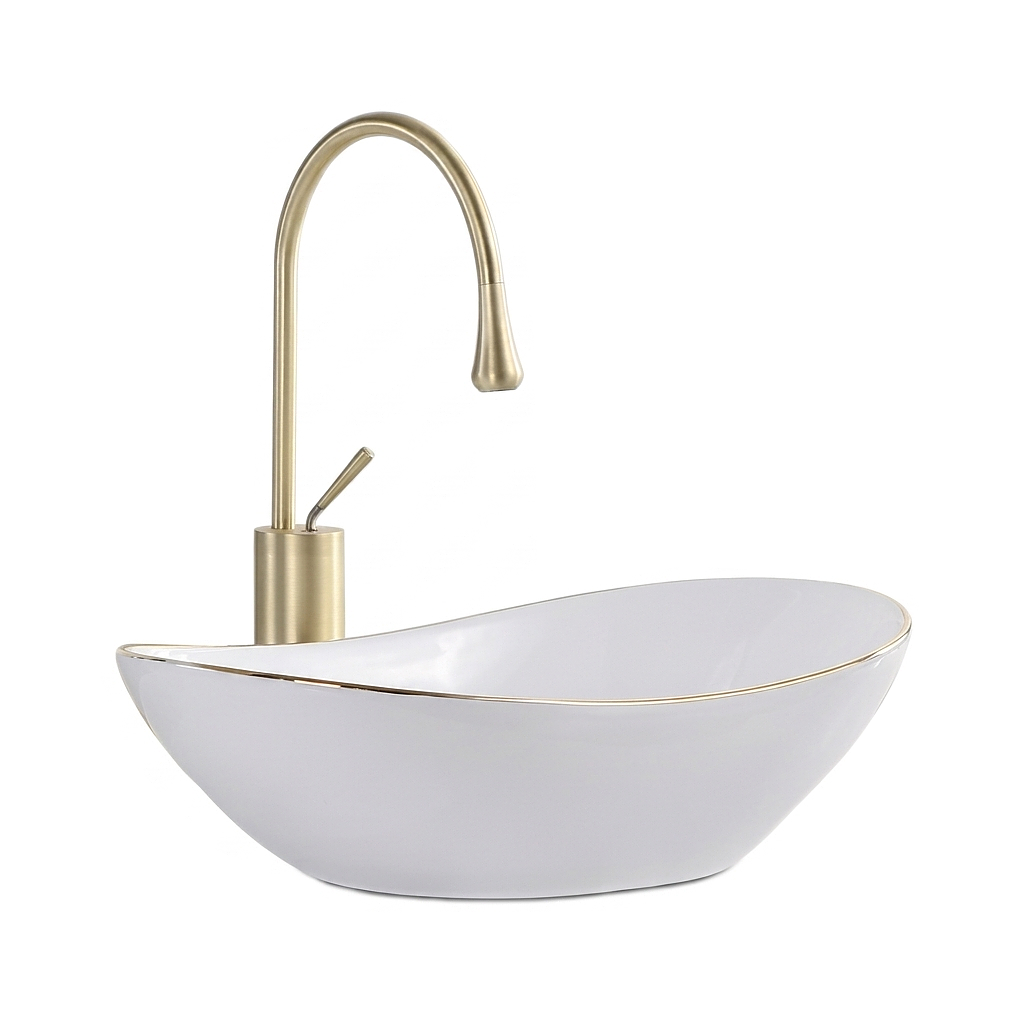 VELDMAN Biała umywalka nablatowa ZUZAN 60 cm złota krawędź