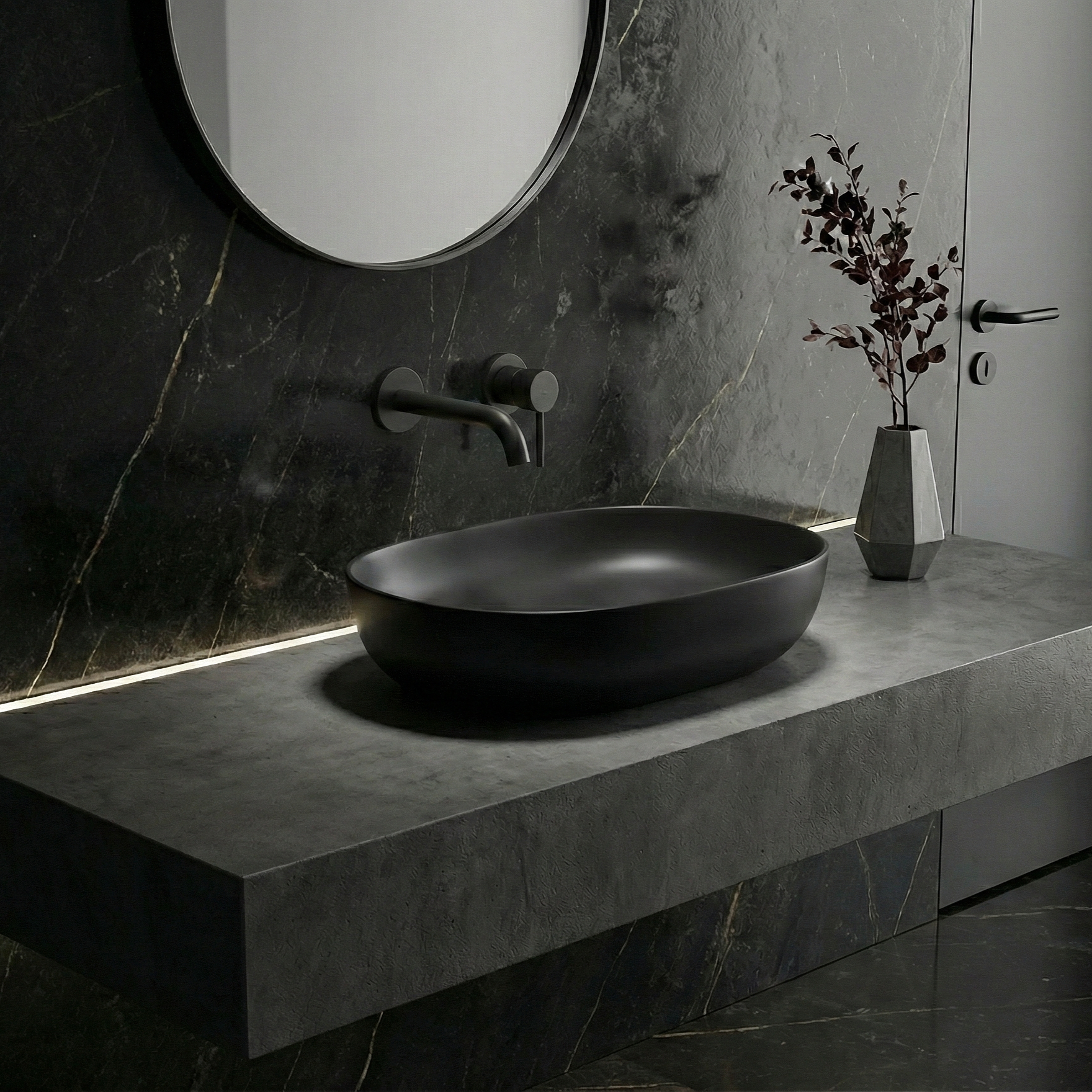 VELDMAN Umywalka ceramiczna 48 cm ANNA SLIM czarny mat